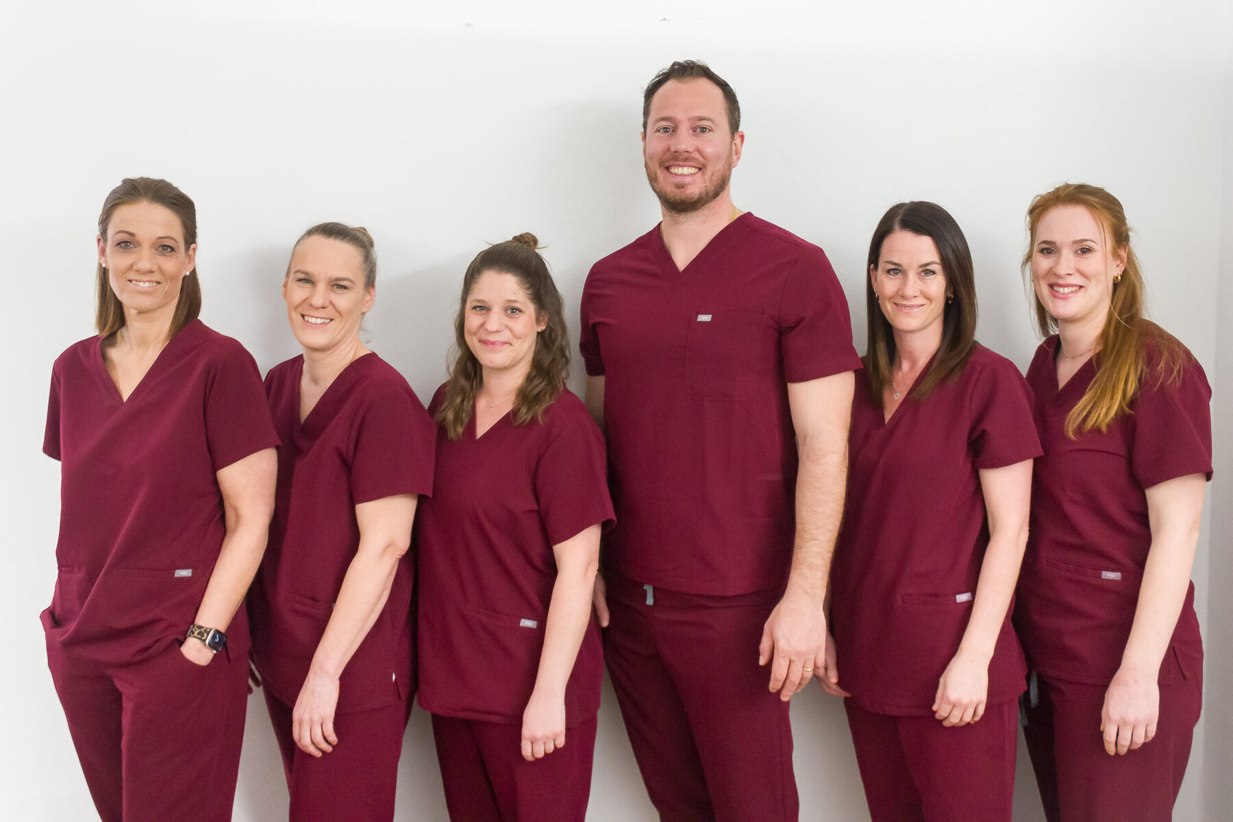 v.l.n.r.: Manuela, Daniela, Sarah, Dr. Dünser, Carmen und Claudia